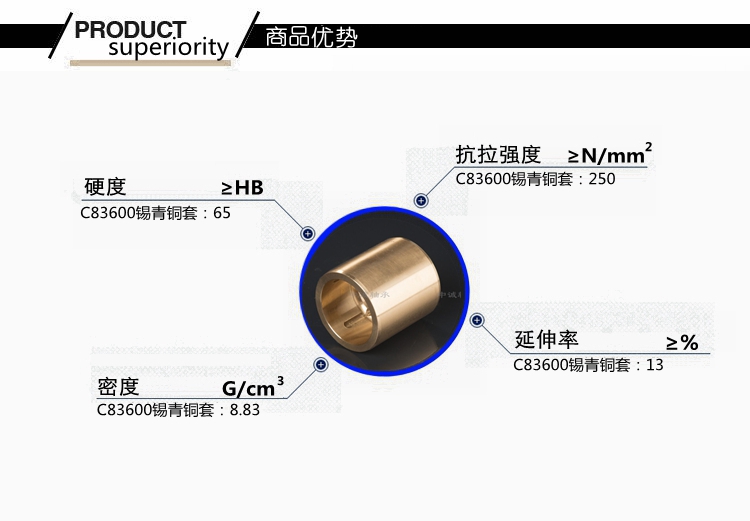 本產(chǎn)品實行ASTM標(biāo)準(zhǔn)………………………………………………… 根據(jù)客戶產(chǎn)品需求我們提供的鑄造方式有:離心鑄造,連續(xù)鑄造和金屬型鑄造?!?牌號C83600合金銅化學(xué)成分:Cu84-86 Sn4-6 Pb4-6 Zn4-6 Fe0.3 Al0.005 Si0.005 Ni1 Sb0.25 P1.5 S0.08…………對比國內(nèi)相近牌號:ZCuSn5Pb5Zn5