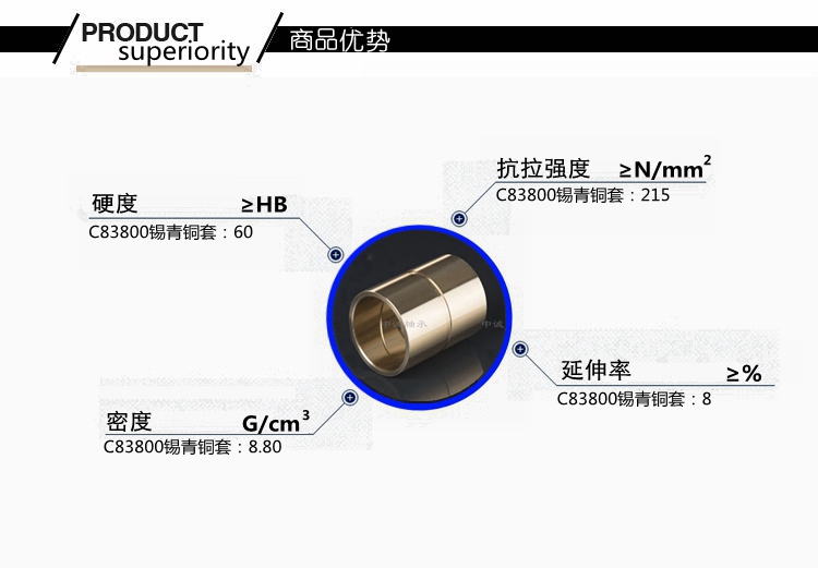 本產品實行ASTM標準………………………………………………… 根據客戶產品需求我們提供的鑄造方式有:離心鑄造,連續(xù)鑄造和金屬型鑄造?!?牌號C83800合金銅化學成分:Cu82-83.8 Sn3.3-4.2 Pb5-7 Zn5.5-8 Fe0.3 Al0.005 Si0.005 Ni1 Sb0.25 P1.5 S0.08…………對比國內相近牌號:ZCuSn3Zn8Pb6Ni1