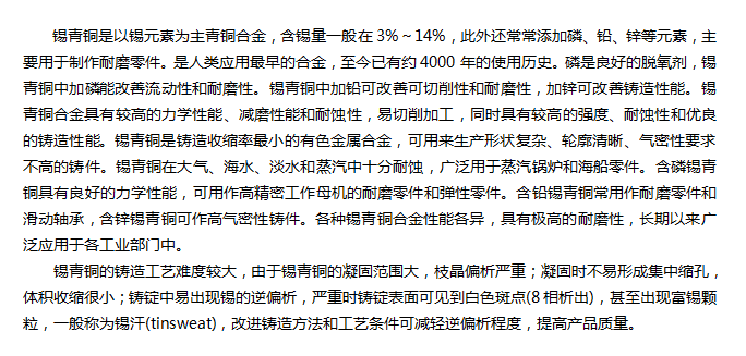 LBC2(CAC602)鑄造錫青銅銅合金耐腐蝕,特別對稀硫酸、鹽酸和脂肪酸的耐蝕性高。LBC2(CAC602)鑄造銅合金用于結(jié)構(gòu)材料,耐蝕、耐酸的配件以及破碎機(jī)襯套、軸瓦。對應(yīng)美國牌號(hào)G-CuPb5Sn,國標(biāo)ZCuSn10Pb5