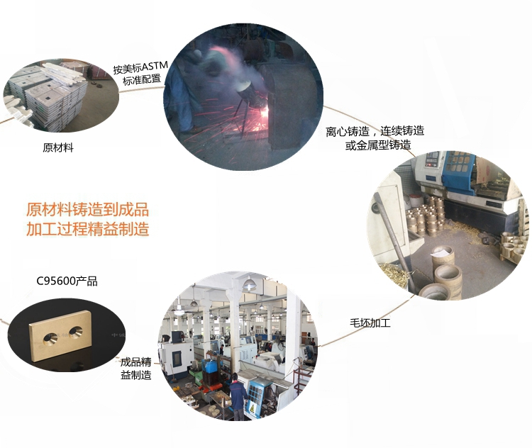 本產(chǎn)品實行ASTM標(biāo)準(zhǔn)………………………………………………… 根據(jù)客戶產(chǎn)品需求我們提供的鑄造方式有:離心鑄造,連續(xù)鑄造和金屬型鑄造?!?牌號C95600合金銅化學(xué)成分:Cu≥88 Al6-8 Si1.8-3.2 Ni0.25