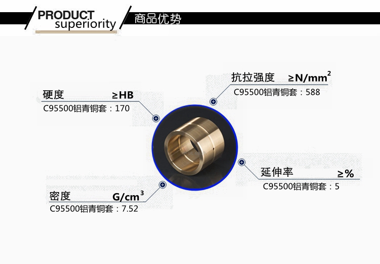 本產(chǎn)品實行ASTM標準………………………………………………… 根據(jù)客戶產(chǎn)品需求我們提供的鑄造方式有:離心鑄造,連續(xù)鑄造和金屬型鑄造?!?牌號C95500合金銅化學(xué)成分:Cu≥78 Fe3-5 Al10-11.5 Mn3.5 Ni3-5.5…………對比國內(nèi)相近牌號:ZCuAl10Fe4Ni4