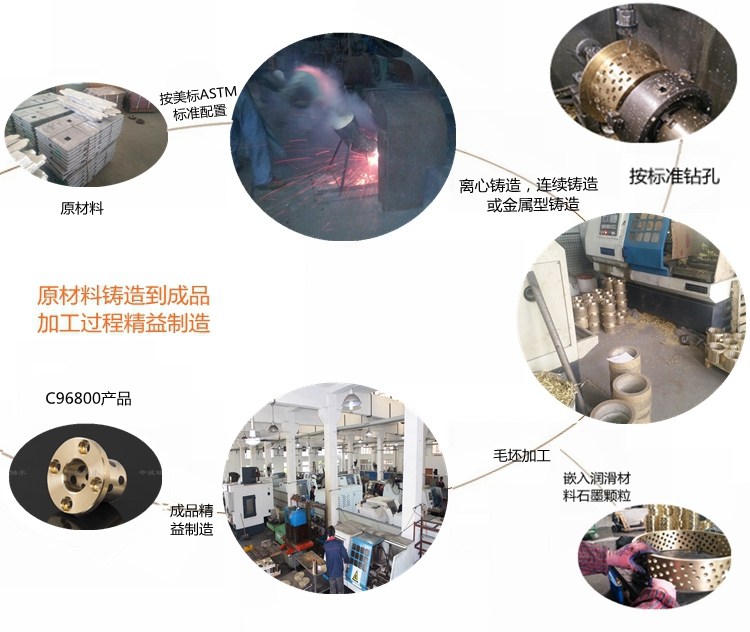 本產(chǎn)品實(shí)行ASTM標(biāo)準(zhǔn)………………………………………………… 根據(jù)客戶產(chǎn)品需求我們提供的鑄造方式有:離心鑄造,連續(xù)鑄造和金屬型鑄造?!?牌號(hào)C96800合金銅化學(xué)成分:Cu余量 Sn7.5-8.5 Pb0.005 Zn1 Fe0.5 Al0.1 Mn0.05-0.3 Ni9.5-10.5 Sb0.02 P0.005 S0.0025