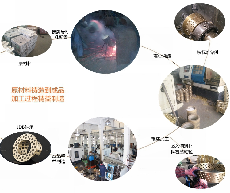 我們根據(jù)使用工況和環(huán)境要求,選擇不同的銅合金材料,如大氣環(huán)境選擇高力黃銅為基體;水環(huán)境下一般選用錫青銅為基體;高溫或海水腐蝕等工作環(huán)境選用鋁青銅為基體;其他特殊工況環(huán)境選擇相應(yīng)的銅合金材料為基體;然后根據(jù)產(chǎn)品的實際受力情況和運動方式,確定潤滑劑的排布方式和密度,以求達到最佳使用效果和壽命。 銅石墨軸承使用廣泛,如冶金機械,工程機械,注塑機械,水利機械,海工裝備,風電設(shè)備,模具行業(yè),印刷包裝機械,礦山設(shè)備,石油化工機械,各種輕工機械等等。