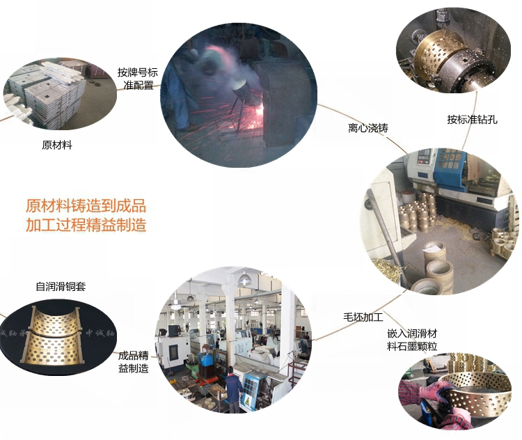 我們根據(jù)使用工況和環(huán)境要求,選擇不同的銅合金材料,如大氣環(huán)境選擇高力黃銅為基體;水環(huán)境下一般選用錫青銅為基體;高溫或海水腐蝕等工作環(huán)境選用鋁青銅為基體;其他特殊工況環(huán)境選擇相應(yīng)的銅合金材料為基體;然后根據(jù)產(chǎn)品的實(shí)際受力情況和運(yùn)動方式,確定潤滑劑的排布方式和密度,以求達(dá)到最佳使用效果和壽命。 銅石墨軸承使用廣泛,如冶金機(jī)械,工程機(jī)械,注塑機(jī)械,水利機(jī)械,海工裝備,風(fēng)電設(shè)備,模具行業(yè),印刷包裝機(jī)械,礦山設(shè)備,石油化工機(jī)械,各種輕工機(jī)械等等。