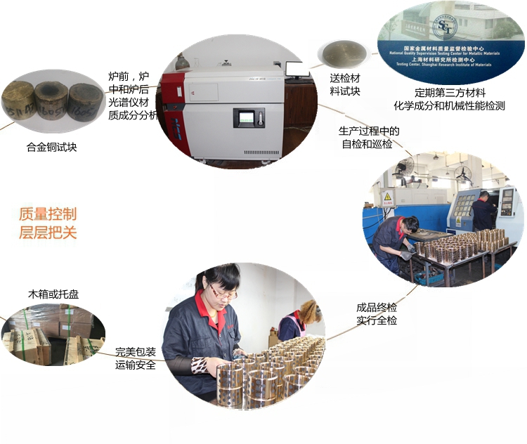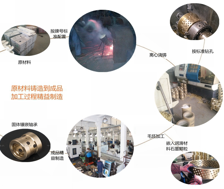 我們根據(jù)使用工況和環(huán)境要求,選擇不同的銅合金材料,如大氣環(huán)境選擇高力黃銅為基體;水環(huán)境下一般選用錫青銅為基體;高溫或海水腐蝕等工作環(huán)境選用鋁青銅為基體;其他特殊工況環(huán)境選擇相應(yīng)的銅合金材料為基體;然后根據(jù)產(chǎn)品的實(shí)際受力情況和運(yùn)動(dòng)方式,確定潤滑劑的排布方式和密度,以求達(dá)到最佳使用效果和壽命。 銅石墨軸承使用廣泛,如冶金機(jī)械,工程機(jī)械,注塑機(jī)械,水利機(jī)械,海工裝備,風(fēng)電設(shè)備,模具行業(yè),印刷包裝機(jī)械,礦山設(shè)備,石油化工機(jī)械,各種輕工機(jī)械等等。