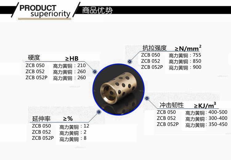 ZCnZn25Al6Fe3Mn3高力黃銅是指高承載力黃銅,HB硬度大于210,根據(jù)需要最高可以做到HB>270-300;產品主要用于工程機械,注塑機械等對承載力要求特別高的場合;一般不作為銅套單獨使用,而是作為石墨銅套的基體,起到高承載的作用,結合石墨潤滑劑的潤滑作用,達到最佳的使用性能.
