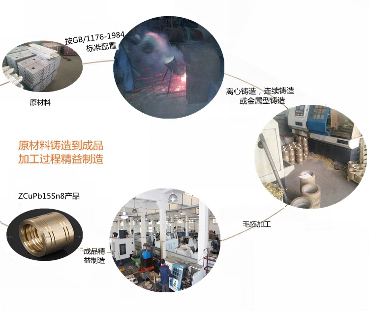 本產(chǎn)品實(shí)行GB/1176-1984標(biāo)準(zhǔn)……………………………………… 根據(jù)客戶(hù)產(chǎn)品需求我們提供的鑄造方式有:離心鑄造,連續(xù)鑄造和金屬型鑄造?!?牌號(hào)ZCuPb15Sn8合金銅化學(xué)成分:Cu余量 Sn7-9 Pb13-17 Zn2 Fe0.25 Al0.01 Mn0.2 Si0.01 Ni2 Sb0.5 P0.1 S0.1