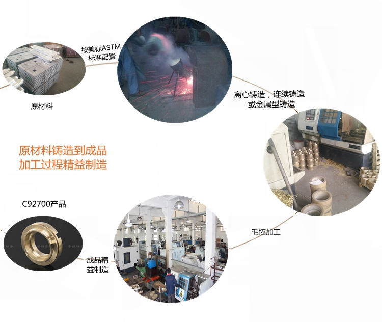 本產(chǎn)品實行ASTM標準………………………………………………… 根據(jù)客戶產(chǎn)品需求我們提供的鑄造方式有:離心鑄造,連續(xù)鑄造和金屬型鑄造?!?牌號C92700合金銅化學(xué)成分:Cu86-89 Sn9-11 Pb1-2.5 Zn0.7 Fe0.2 Al0.005 Si0.005 Ni1 Sb0.25 P1.5 S0.05